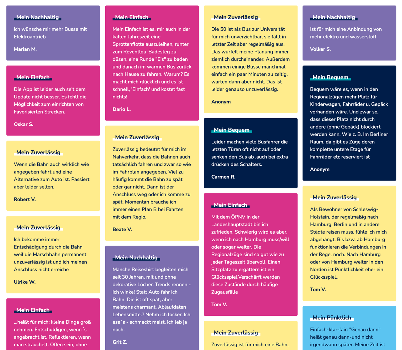 Schon in den ersten Wochen haben über 1.400 Menschen ihre Gedanken auf dialog.nah.sh geteilt – Tendenz steigend. Die Einsendungen sind vielfältig, ehrlich und oft überraschend: von kleinen Alltagsgeschichten bis zu großen Ideen für die Zukunft. Sie zeigen, dass Mobilität weit mehr ist als ein Verkehrssystem. Sie ist Teil des täglichen Miteinanders in Schleswig-Holstein. Genau diesen Austausch will NAH.SH fördern: mehr Zuhören, Verstehen und gemeinsames Gestalten.